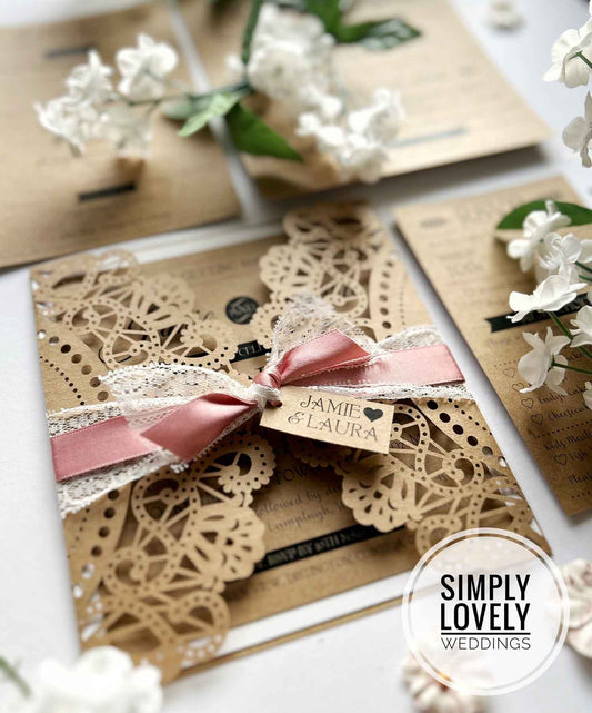 We supply a wide range of laser cut wedding invitations and matching stationery. Our Laser cut ranges are designed with you in mind. We want you to enjoy designing and end up with invitations that you and your guests will love. You can create your own unique, beautiful wedding invitations with little effort!