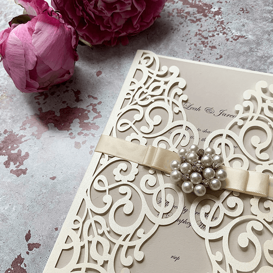Why not use our beautiful pearl embellishments with one of our laser cut, or pocket invitations. Use these embellishments along with your choice of our patterned, embossed, translucent, lustre and glitter or flocked papers for save the date cards, invitations, RSVPs, place-cards, menu covers, order of service covers and table decorations. Some of our pearl embellishments match some of our crystal and gold and antique embellishments for if you want to mix and match with a different colour. Some are also available in a range of sizes so you can use one design in different ways on your invites, place cards, order of sevices etc…