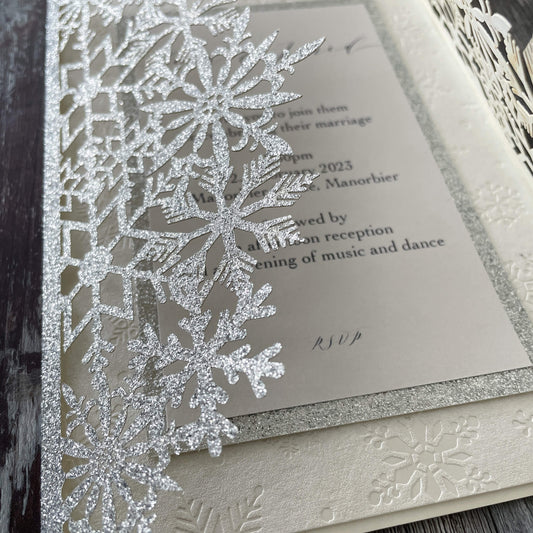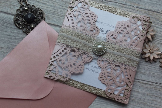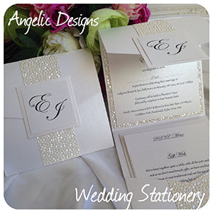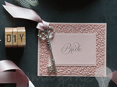 Use your choice of flocked papers with one of our laser cut, or pocket invitations. To really bring your handcrafted wedding invitations to life add one of our crystal, pearl or gold embellishments. Or how about a length of ribbon or lace along with a buckle. One of our most popular products to add to our patterned paper is our selection of bows, or keys and charms. We also recommend our self adhesive stickers which are perfect for creating cheap wedding invites.