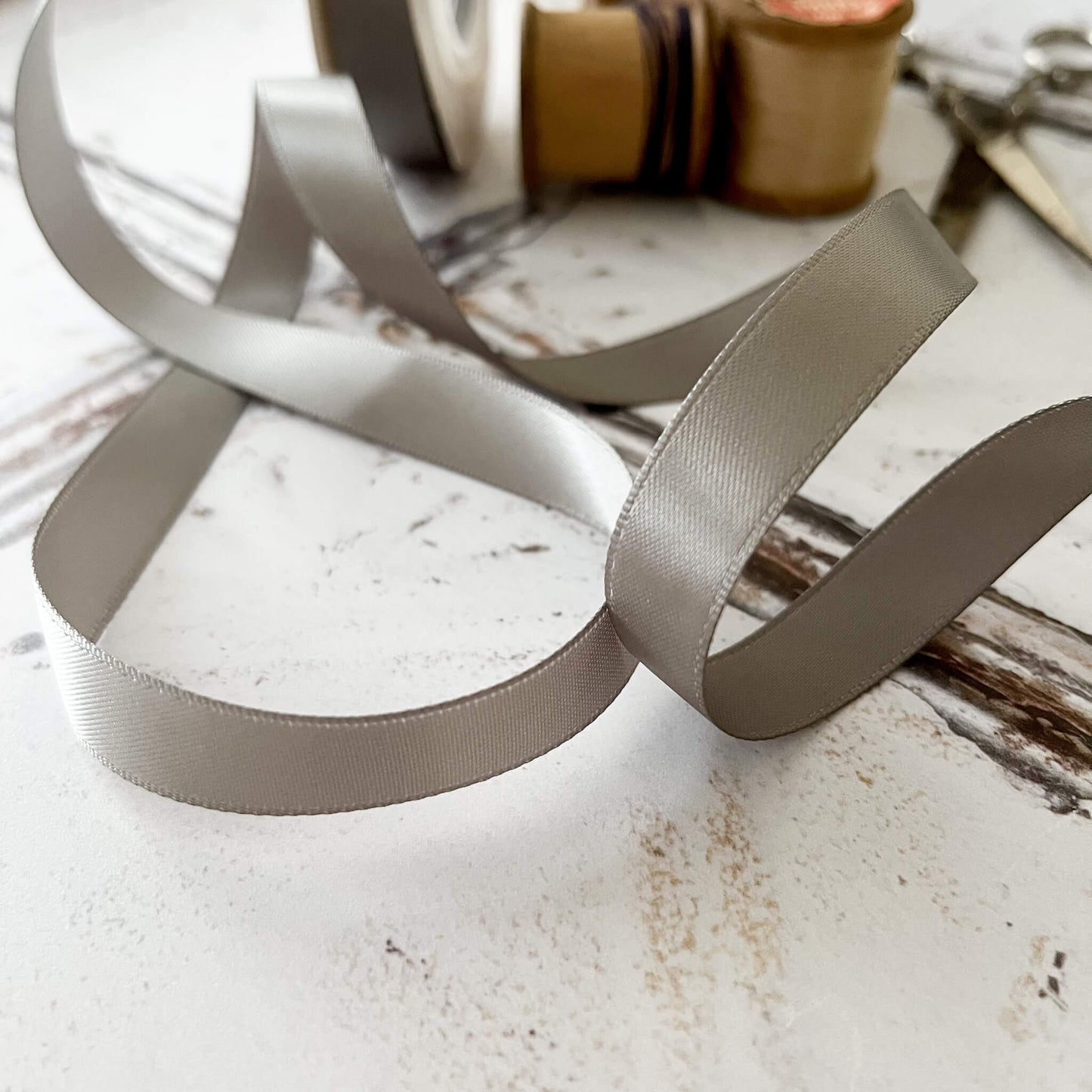 Verlieben Sie sich in unser 38 mm breites metallgraues Satinband.
