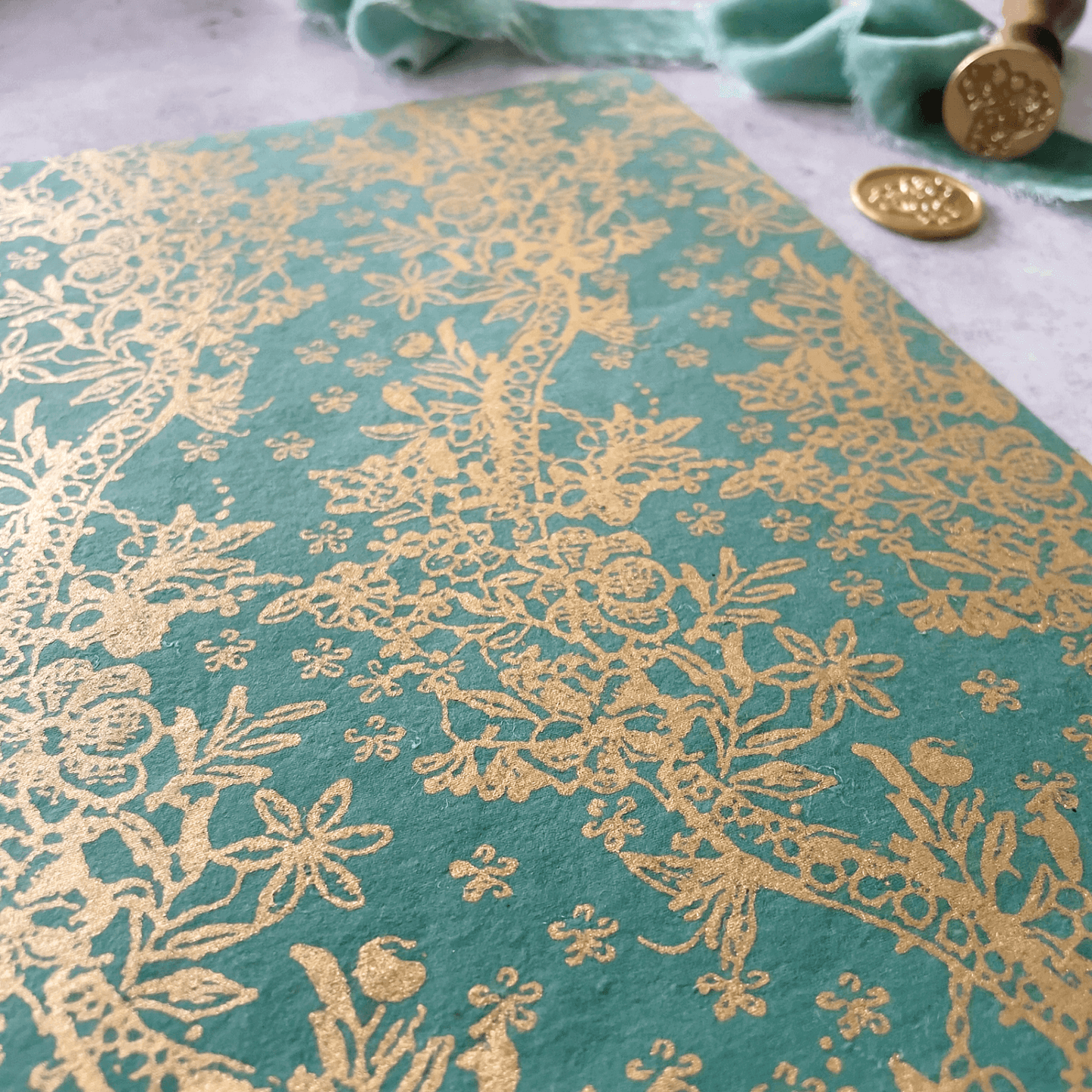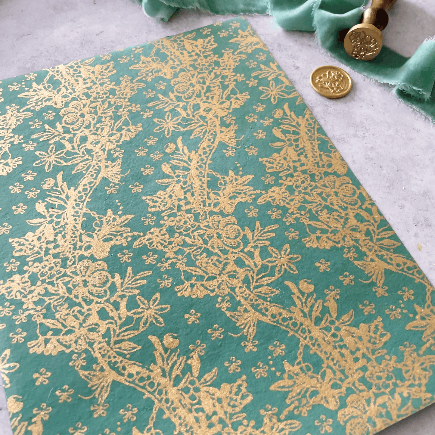 Edwardianischer Glanz in Salbeigrün und Gold (recyceltes Baumwollpapier)