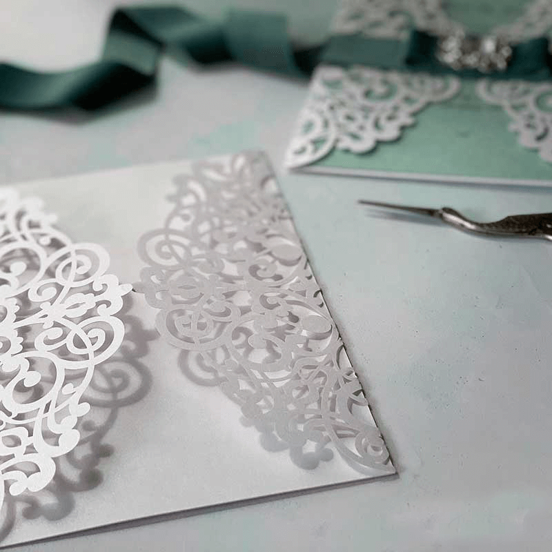 Luxuriöse Einladungen mit filigraner Laserschnitt-Designarbeit.