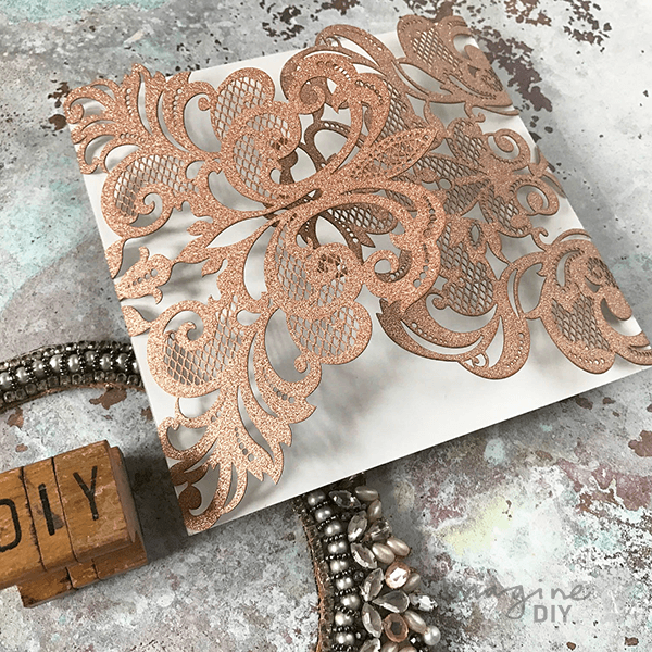 Aufwendige, blanko, lasergeschnittene Taschen in Roségold-Glitzer. Passt perfekt zu unserem Roségold-Glitzerpapier und der Roségold-Glitzerkarte .