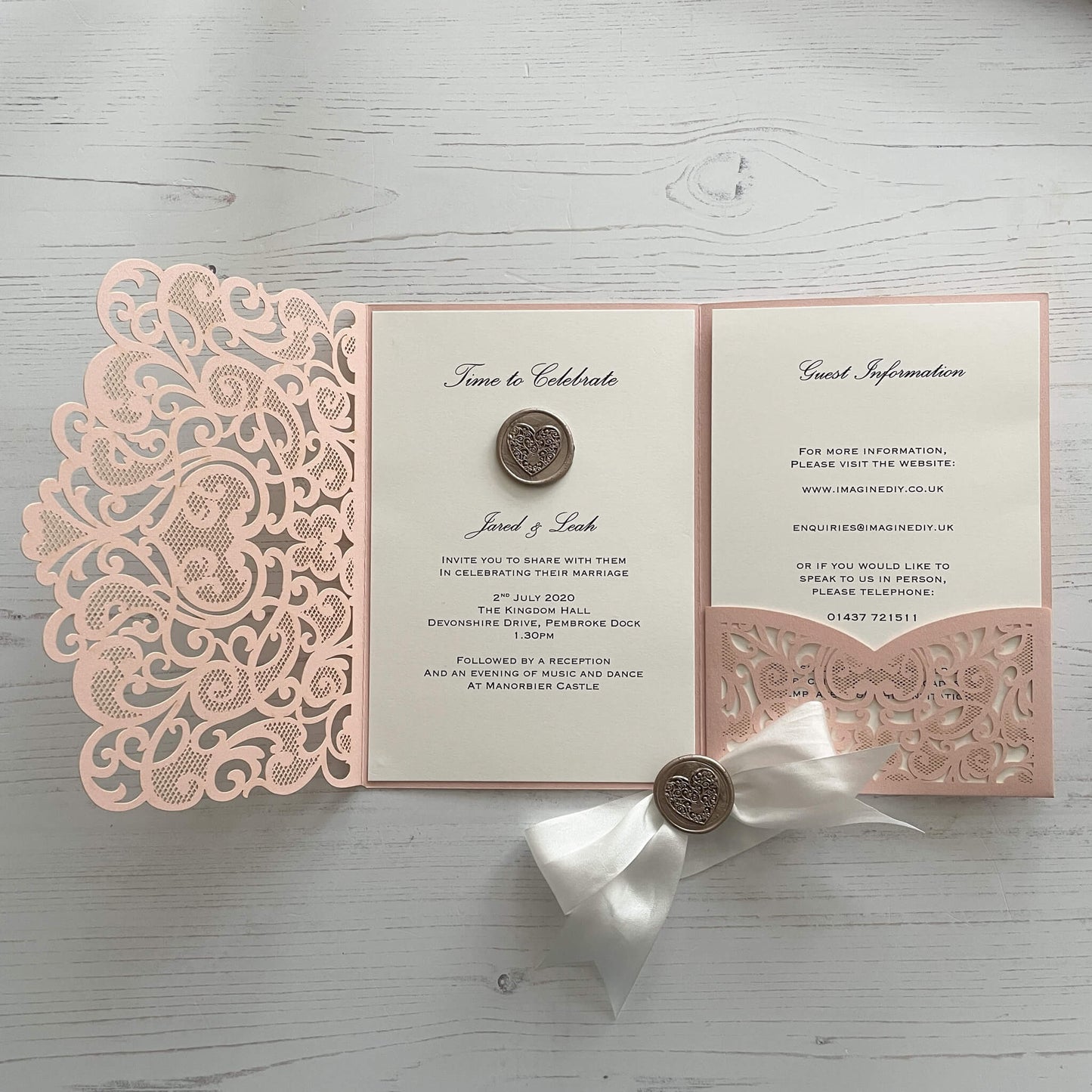 Un pannello in cartoncino pretagliato per adattarsi ai nostri inviti tagliati al laser 5 x 7.