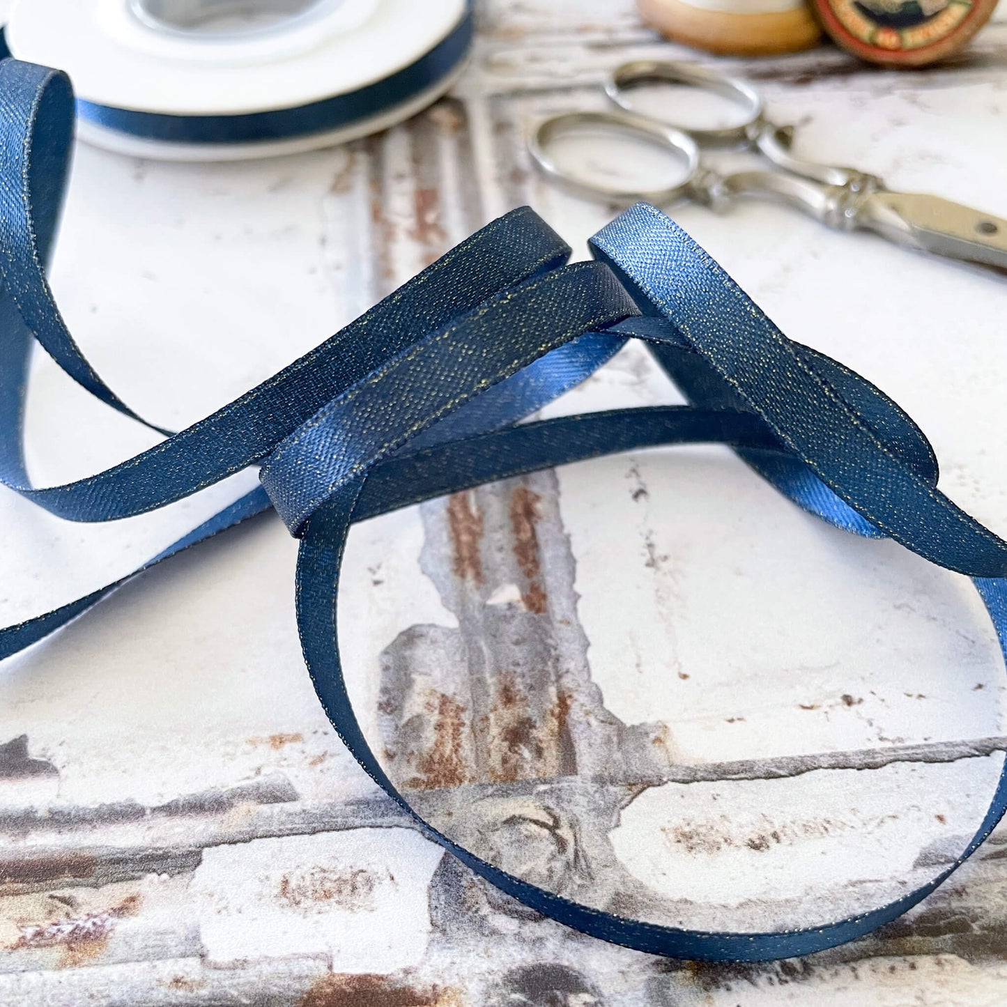 Navy Sparkle Ribbon. Navy woven ribbon with Gold sparkle detail. Perfect for adding a subtle touch of glamour