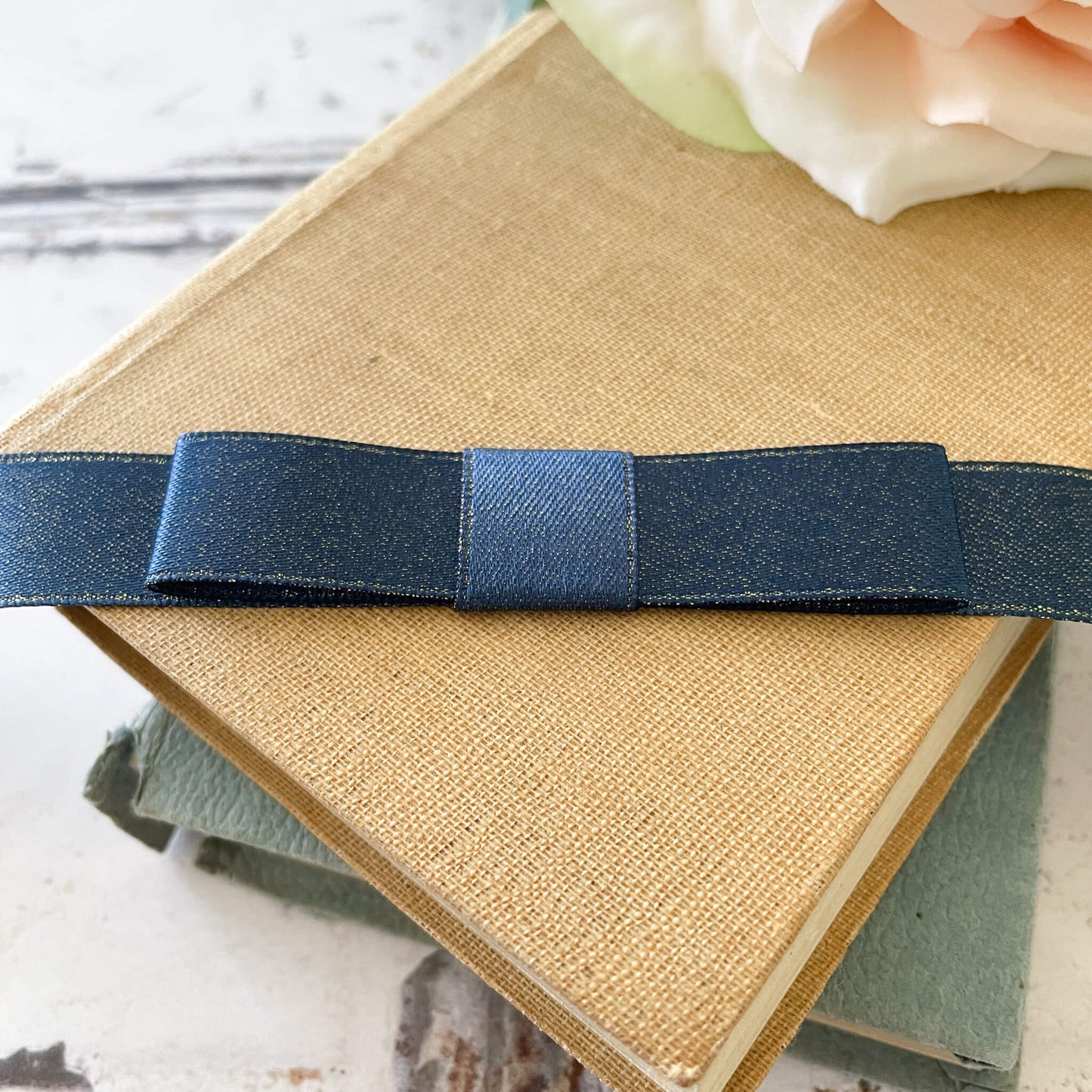 Pretty pre-tied Dior Bow in Navy Sparkle.Ā Made from Navy ribbon with gold sparkle. Perfect for adding a quick, easy and elegant finishing touch.