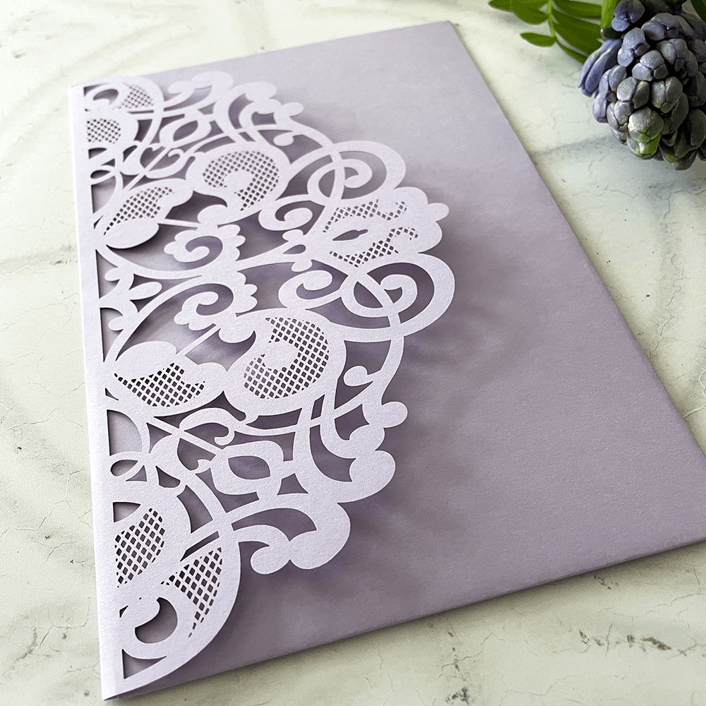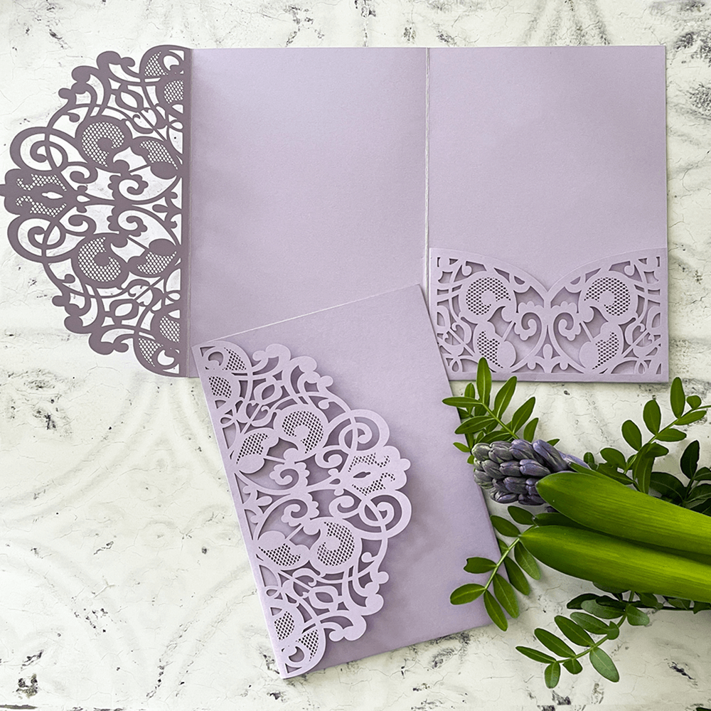 Elin Laser Cut Pocket Invitation in Matt Lilac