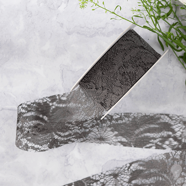 Florence Lace Grey is a gorgeous ribbon to add rustic charm to your designs and decorations.