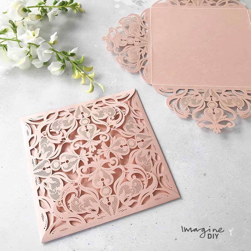 Intricate laser cut design in Blush Pink.