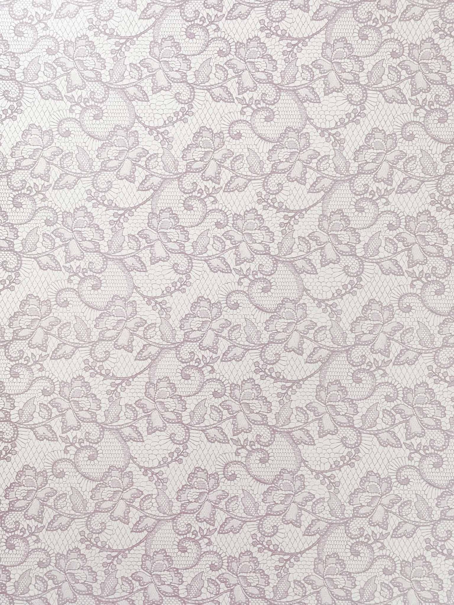 Margot Lace Paper Dusky Lilac. A beautiful Dusky Lilac lace print on a pearlised white background.