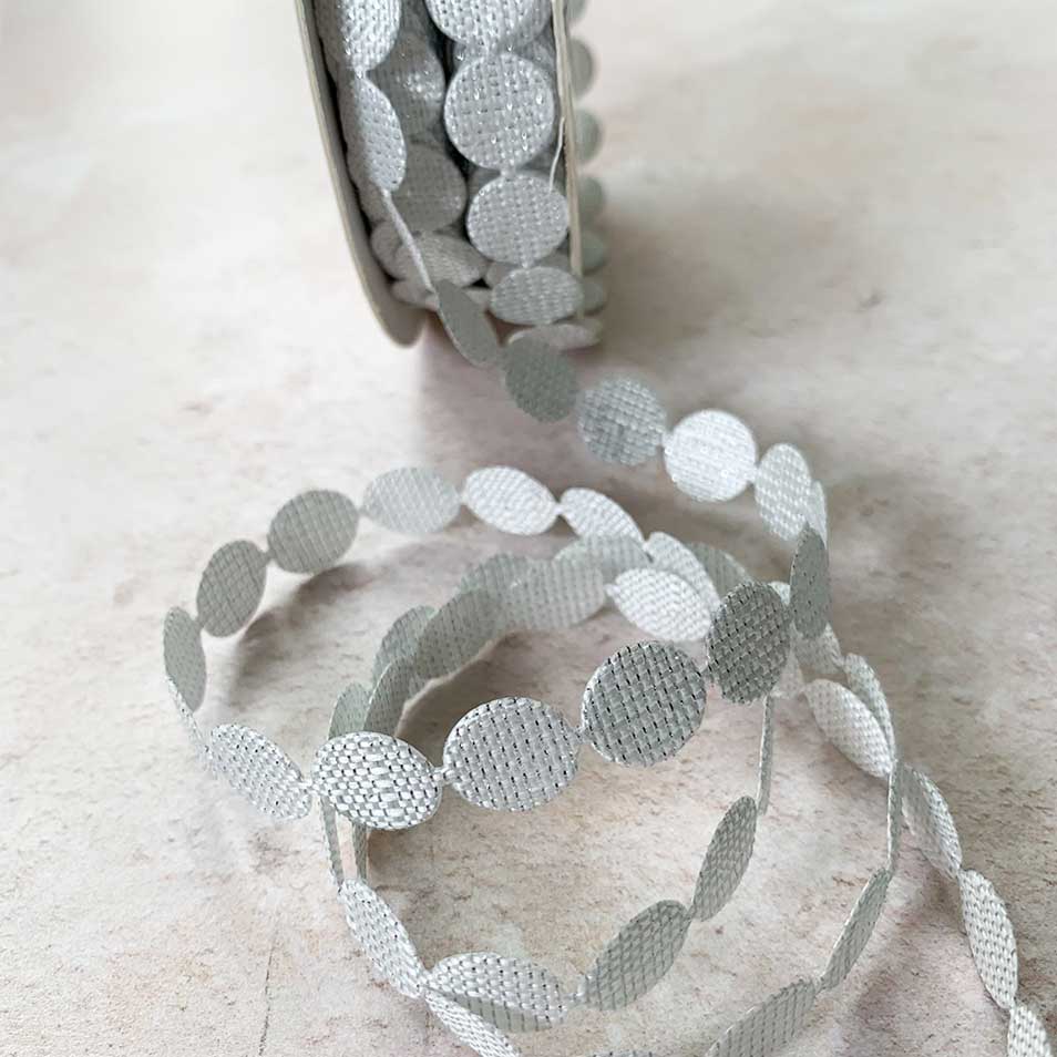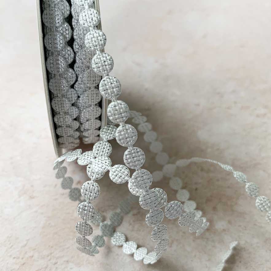 Joined dots in White with a silver sparkle. Ā Perfect to add a touch of interest and fun.