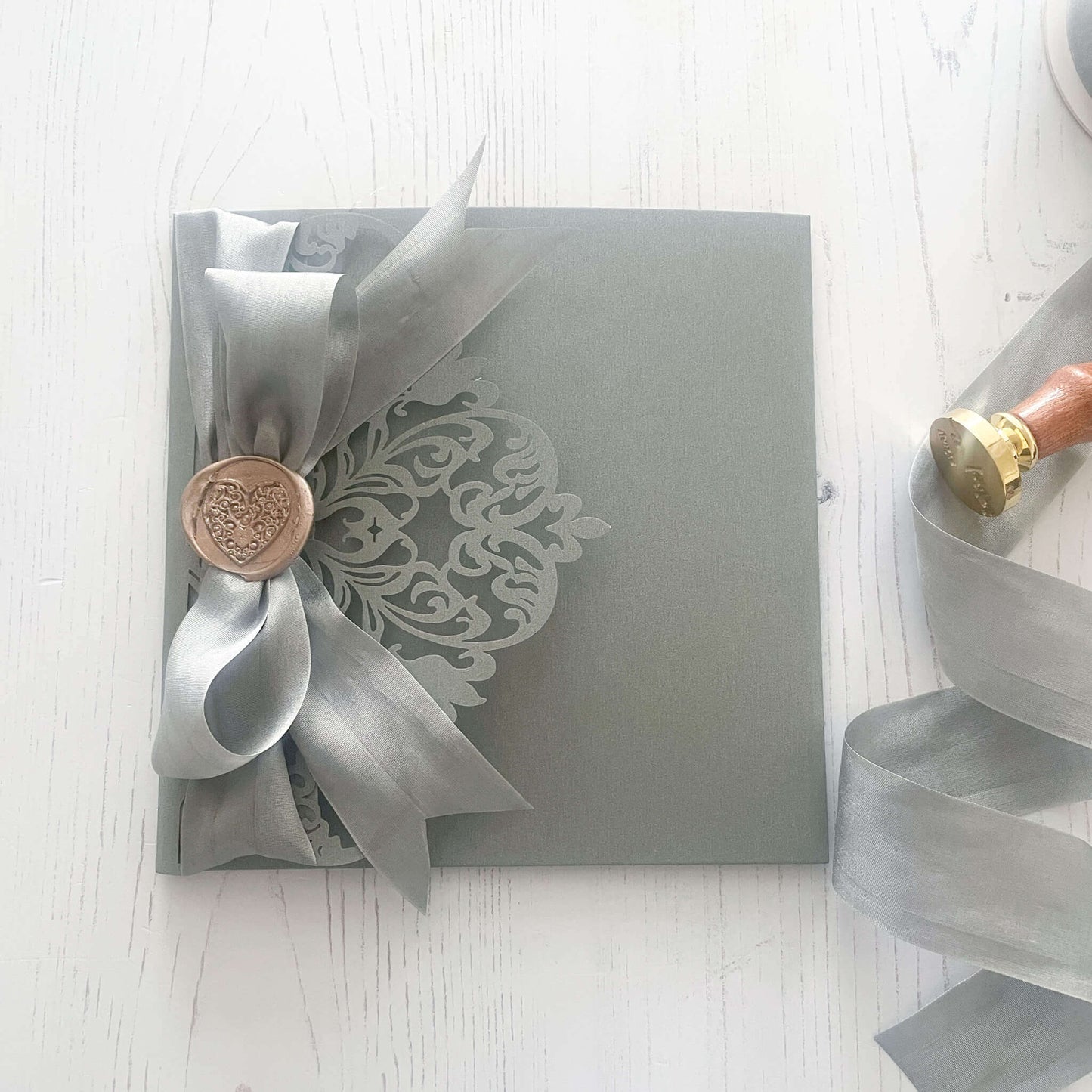 Wisteria Laser Cut Pocket fold Wedding Invitation - Grey