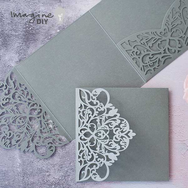 Impress your guest with the gorgeous Wisteria Laser Cut Pocket Invitations in Pearlised Grey.